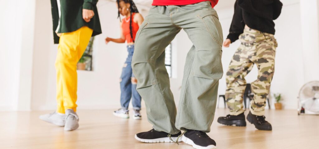 シャッフルダンスはストリートカルチャーと密接な関係があります。動きやすく、かつ見た目もクールに映るファッションが好まれます。ゆとりのあるパンツやスニーカー、キャップなどが定番スタイルです。